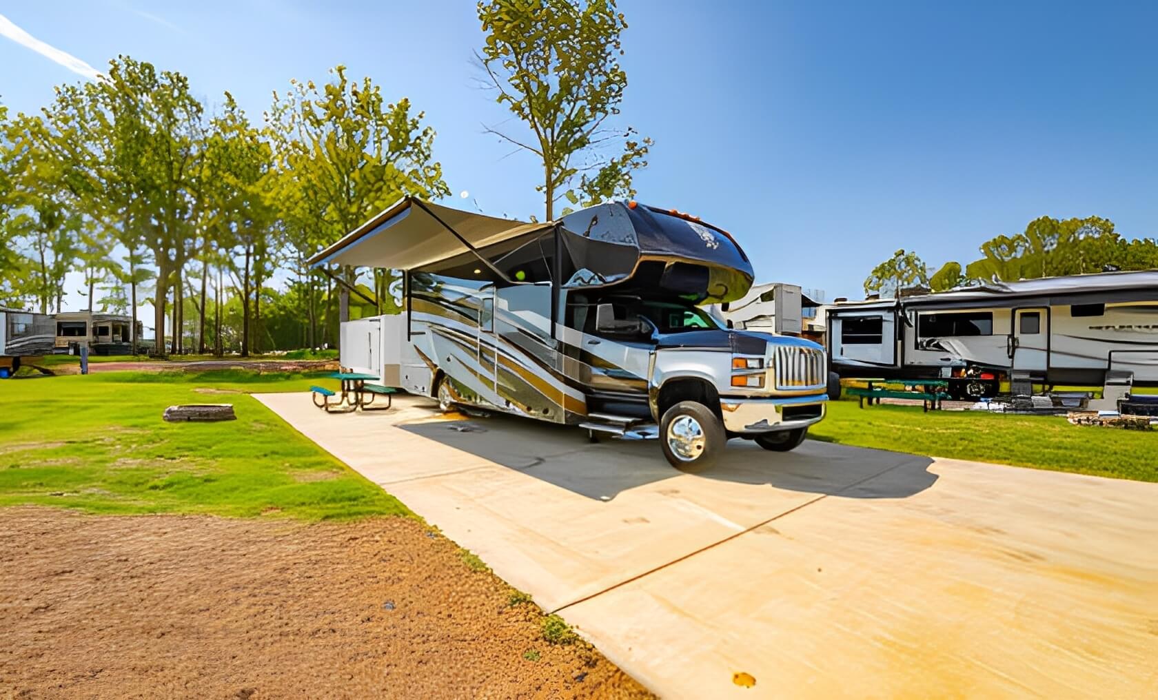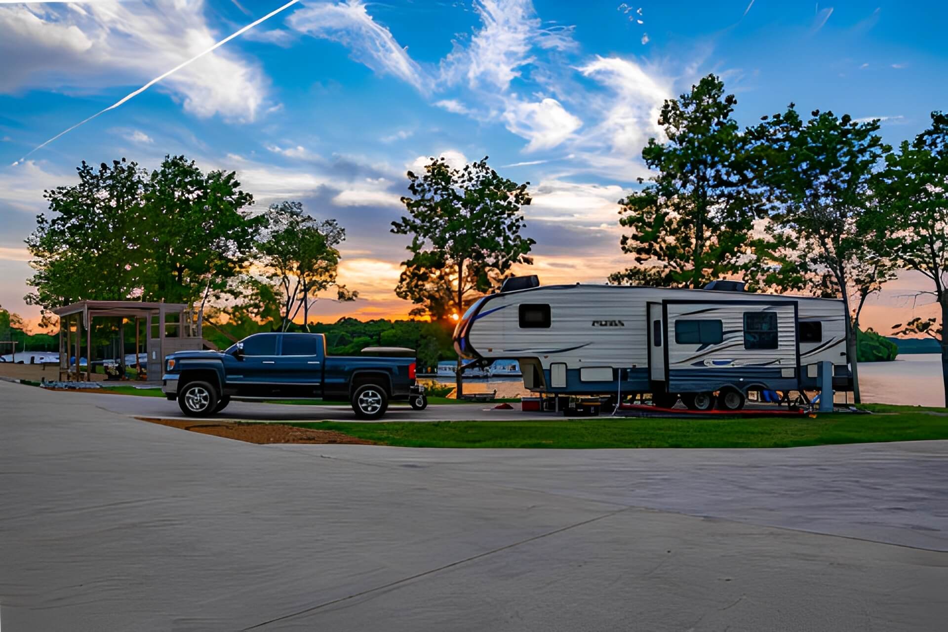 Looking for camping near Nashville that’s right on the water but still packed with comfort? Four Corners RV Resort overlooks J. Percy Priest Lake and offers lakefront camping with full hookups, fire pits, and serious views. Whether you’re pulling in with your RV or staying in a floating cabin, tiny home, or fifth-wheel rental, you’ll have all the space and amenities you need to settle in and kick back. The on-site marina makes it easy to rent a paddleboard or boat and hit the water, or just hang out at the beach area with a drink from the Scoreboard Bar & Grill. There’s a dog park, playground, golf cart rentals, and even propane and firewood delivery. Want to explore? Couchville Cedar Glade and the Stones River Greenway are nearby for hiking, and downtown is just 20 miles away—perfect for checking out Nashville breweries & distilleries or catching a show. Book your stay and enjoy laid-back lake life just outside Music City.