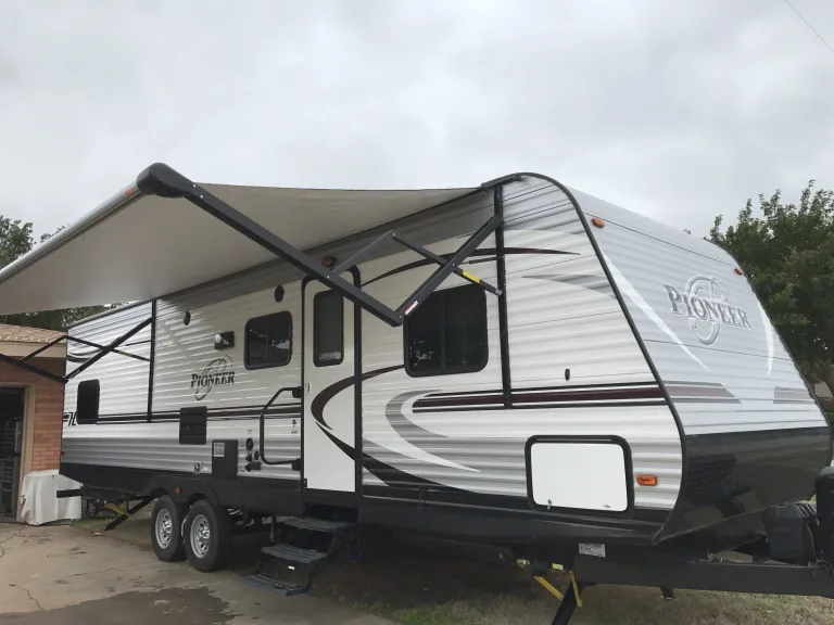 30 foot spacious unit. Fully loaded with, 32" television, DVD and Radio with indoor and outdoor speakers, awning, microwave, stove top, oven, refrigerator, Indoor and outdoor shower, kitchen and bathroom sinks. Sleeping arrangements consist of 4 bunks in the back of the trailer, fold out couch, dining area converts to a bed and a queen size bed in the front area.