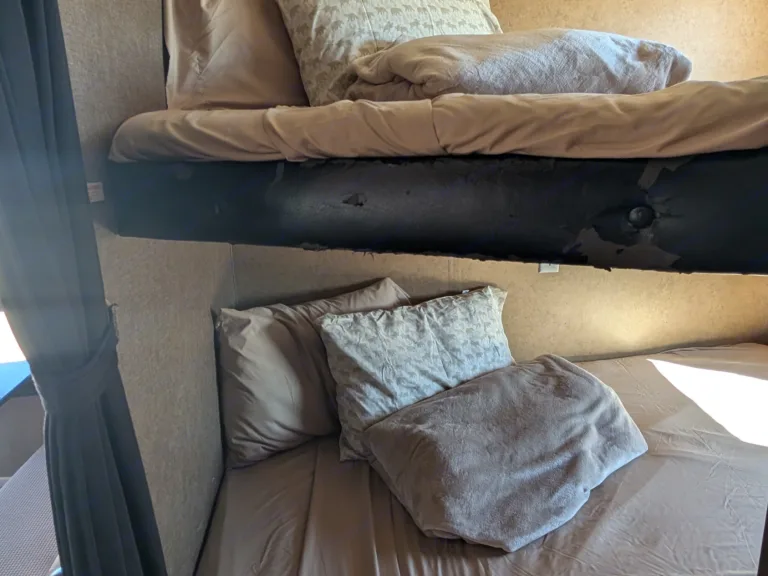 We want to make sure you enjoy your vacation so we have included items to help make your packing less stressful, so you can be ready for fun.There are sliding curtains to allow privacy for the main Queen bed and the rear Bunk beds. Mattress protectors, bottom sheets, pillows, towels & wash cloths are included, but we do recommend bringing your own bedding and towels.