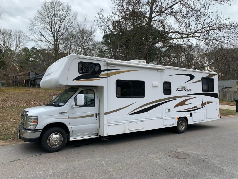 Well taken care of Sunseeker. Twin bunk over cab, single bunk beds and queen in the master. Couch and table also turn into beds but most would find them too uncomfortable. Master has a memory foam topper on it and I swear I sleep better on it than my house!A clean set of sheets will be on the master with a few extra blanketa. Pillows and sleeping bags or blankets for anywhere else will be your responsibility.Fair warning: I always have my German Shepherd with me when I use it so there may of course be a stray dog hair or three, so people with super allergies be aware. When I clean it I try to make it look and smell like he’s never been in there. But they’re not nick named German Shedders for a reason. Again i try very hard to leave no trace of him. Your animal is very welcome but you’ll of course be responsible for any accidents or damage.Three TV’s with DVD players and a sound system / radio. Even a car style radio in a hatch outside under the awning! I personally just use the TV antenna for digital over-the-air for news, weather and Andy Griffith reruns. But you’re not in the house, shouldn’t be watching TV anyway. Ha ha.Kitchen is very useful with the quickest microwave in the universe, three burner stove and oven. I personally don’t like the taste of hose / tank water so I get the 2.5 gallon jugs with spouts and leave them on the counter. There are pots, pans, cooking utensils and a few bowls. I will stock the cabinet with paper plates, plastic utensils and cups. If you do anything other than microwave I just ask you to please clean after yourselves, especially bacon!I usually leave a fold up table and two fold up plastic chairs in the under storage. I’m learning what people want so if you have a request of something I’ll see if I have it.Generator is one of the quiet ones but you won’t want to use it all the time. Power is 30 amp and the cord is about 12’. I also have a 20’ extension and the adapter to plug into 50 amp. In the storage is also a hose for the water hookup and a coax of the RV park has cable.There is a dump hose and washout but I don’t expect you to dump the “black” tank. If you want to I’m not going to stop you and will say “ thank you” followed by a hand shake (after you assure me you’ve washed it! Ha ha).RV drives great. Good power. Horrible mileage but the same you’d get from anything else this size. 10-12 mpg is about average. Less of you’re towing. Has a huge fuel tank! It’ll be full when you pickup and I ask that it’s full when you drop it off. If you’re running late I’ll estimate a fill-up.Only issues: and I don’t mind telling you as I want you to be super satisfied and not have any surprises!! Toilet doesn’t flush great. Never has. It works just doesn’t have a lot of water pressure. It’s always been that way. I keep a jug in the bathroom that I fill from the tub when needed.