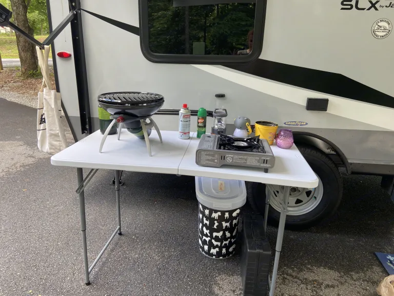 2020 Jayco Jayflight SLX 154 Bunkhouse. Sleeps 2 kids (or small adults) on the bunks and 2 more on the Queen-sized dinette/bed. Kitchen includes a fridge, convection microwave, sink, and two burner stove. Bathroom had a toilet and tub/shower. It has a large exterior power awning with LED lights, and Bluetooth stereo system with indoor and outdoor speakers. At under 3000 lbs it’s easily pulled by many SUVs and pickups (we pull with a Jeep Wrangler). Just under 18’ exterior length. Our little nugget is pet friendly to non-destructive well trained furry friends; we often camp with our pups too!Take it for a weekend of camping at Red Top Mountain (15 mins away), Clark’s Creek (10 mins away), Cloudland Canyon, or any of the dozens of other nearby parks in Georgia, Alabama, Tennessee, or further if you’d like. We recently traveled to Alabama’s beautiful Cheaha State Park (about 1.5 hours away) and recommend it highly.We’ll have you set up with sheets, towels, blankets, basic cooking tools, two camp chairs, a folding outdoor table, a single burner outdoor stove, and a small propane camp grill.Any questions? Just ask! This is a cute and cozy setup.
