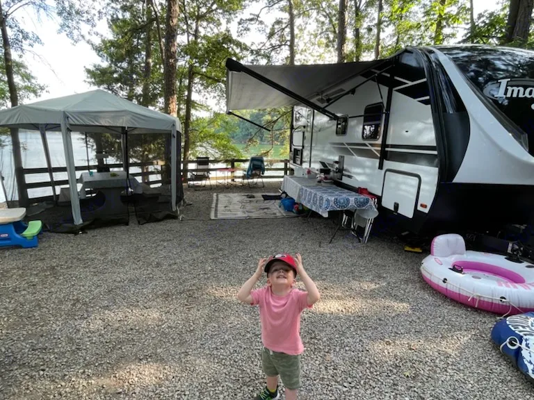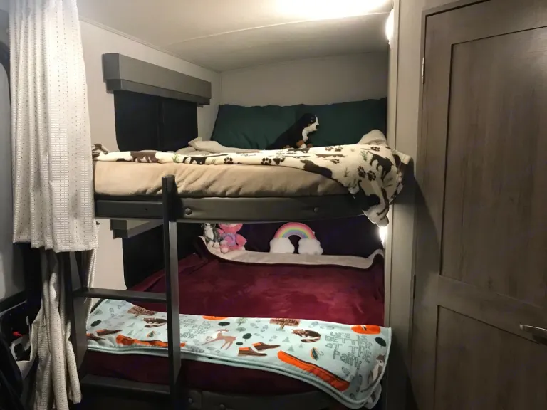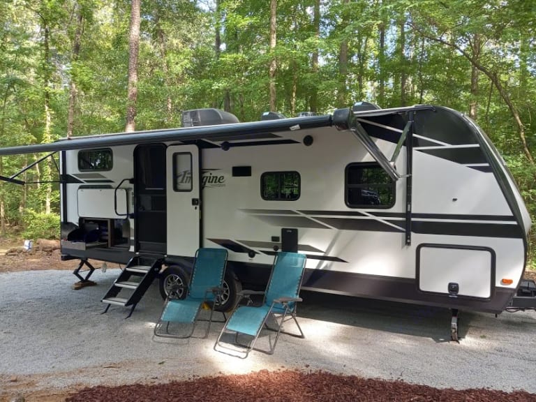Make traveling and spending time together better than ever with this Grand Design Imagine 2400BH! This camper has an open floor plan with tons of storage space and it features more living and sleeping area than other campers in its class. The large slide provides an oversized U-shaped dinette that also converts into an additional bed for one adult or two children.The kitchen area is equipped with a three-burner gas stove, a gas oven, a microwave, a toaster, and a Keurig Coffee maker. Ample pots, pans, dishes and silverware are included for ease of cooking and serving meals. Best of all is the oversized camper refrigerator which provides room for all your groceries for the trip!The entertainment center includes a CD and DVD player as well as Bluetooth functions. The Roku television is centrally located across from the fold-down dinette so families can cuddle together while watching a movie on a rainy day or watch a game of their favorite sports team. The TV even swivels around so kids can watch from their own bunk bed! The sound system gives you the option of using the indoor speakers, outdoor speakers or both sets of speakers at the same time. Playing music while utilizing the outdoor kitchen makes cooking fun!The outdoor kitchen is a two-gas burner stove, with a connectable hose for clean water and a small refrigerator. A fold out table is provided to allow additional counter space when prepping food outdoors. The extra-long awning covers the outdoor kitchen area, allowing you to cook in the shade or out of the elements.Two double-sized bunk beds are on your left when entering the camper and are tucked out of the way. Each bunk comes with an individual curtain to isolate the space as well as night lights and charging outlets for electronics. Beneath the bottom bunk is additional storage space for slightly larger suitcases and gear.The bathroom is conveniently located next to the bunks and across from the entry door. The large shower with a vented sky light means anyone can use it comfortably. The upgraded showerhead can be handheld and there are shelves and hooks for linens. The mirrored medicine cabinet over the sink is an additional bonus which brings the comforts of home to the world of glamping!On the other end of the camper is the private master bedroom which has a full-size queen bed with 2” memory foam mattress topper. Wardrobe closets and multiple storage drawers are located on both sides of the bed and overhead. Enjoy some quiet time before bed with the individual reading and night lights as well as built-in nooks on each bedside for storing your book and for charging your electronics. The bedroom also includes a mounted television with built-in DVD player and Roku stick.The pass-through space under the front of the camper has lots of room for storing fishing gear, golf clubs, outdoor games, suitcases and additional items that may otherwise be awkward to transport.Getaway Camping Rentals is all about making your trip easy! You can add linens, firewood and other items to your reservation- just ask! We will communicate with you before your rental and spend plenty of time going over the camper with you at orientation so you know how to work everything. (Please allow one hour. Kids are welcome at orientation, but younger ones may need some entertainment during this time.)If you are towing the camper yourself, we will make sure you have everything you need to be able to tow and set up this camper, including a hitch and weight-distribution system. If you don't have a brake controller, we rent them. All you need is a 7-pin plug on your tow vehicle and we can take care of the rest. You'll receive detailed instructions on how to set up the camper that will make it simple.Take advantage of our "True Getaway" delivery services and we will have the camper set up and waiting for you; just bring your clothes and food! At the end of your trip, we will take down the camper, clean it, and dump the tanks. Popular destinations include Corp campgrounds McKinney, Sweetwater, and Payne; GA state parks Red Top Mountain, Fort Mountain, and Vogel; local marina Allatoona Landing; and Bartow County campgrounds Clark Creek and Gatewood.We have other campers available if you are camping with a group and Getaway Camping Rentals has a 5-star rating on Google!