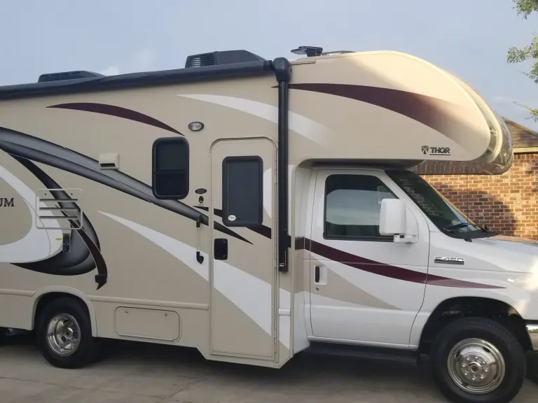 Begin your adventure in a very clean, dependable Ford 450 gas truck 24 ft long Thor Motor Coach Quantum series motor home. Sleeps 5 comfortably but up to 6 people. Has 1 large queen sized bed, double bed over the cab and table makes into a bed. Has private bathroom with stand up shower, microwave, 3 burner stove top, gas oven, refrigerator, freezer, generator, A/C, heater, 2 large screen tv's with outside to inside cable hook up, outside shower, 2 outside storage compartments, slide out bedroom and outside awning. Fully stocked with sheets, towels, blankets, pots, pans, utensils, and a coffee pot. Pets are allowed.