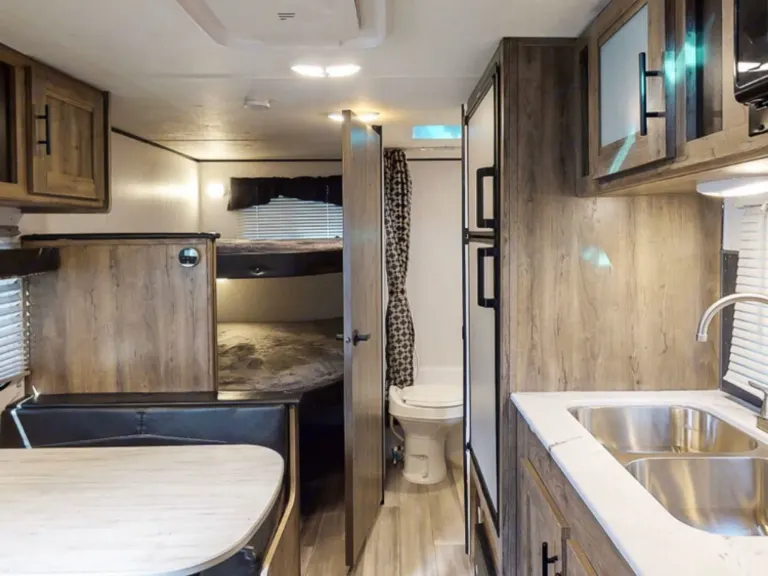Half ton truck or SUV can tow your vacation. Yellowstone, Jackson Hole, or many other options. 2021 trailer allows for a heap of memories with comfort and style. We have pulled with our Toyota Tundra 2008. Slide into smaller areas. Fridge inside and small fridge on the outside. Stay where it’s parked or take it for an adventure. Full bath with shower and tub. Full size bunk beds comfortably sleep one adult each or 2 kids each. (Top bunk only holds up to 190 lbs.) Main bed is a queen and sleeps 2 adults comfortably. Dinette folds out to a short twin size. Delivery is possible - tell us where and we will let you know.What's included8 hr Generator when filled with one gallon of gasoline for microwave and plug use, Heater and AC, Speakers inside and outside for music or audio of your choice via radio or Bluetooth from your device, Lights on awning, Fresh linens, roasting sticks, salt and pepper, a few spices, utensils, plates, cups, pots and pans, shampoo, conditioner, body wash, lotion, hand soap, dish soap, dish cloths, hot pads, bath towels, washcloths, paper towels, scissors, 2 decks of cards. RecommendationsKayaking, Rafting, Hiking, Biking, Horseback Riding