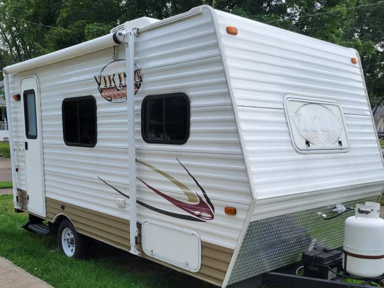 2013 Coachman Viking 16FB travel trailer. This camper has all the amenities needed to have a fun adventure without sacrificing some comforts of home. This unit is very clean and stocked with all of the usual essentials. The kitchen has dishes, silverware, pots, pans and silverware. The kitchen has a stove top, microwave, refrigerator and sink. The queen bed has fresh bedding and pillows. The dinette folds down to make another twin bed. This unit has a bathroom with a shower/tub and a toilet. You will not have to worry about being too hot or cold - there is an air conditioner for the hot days and a furnace for the cold days! For the camper looking for shade...