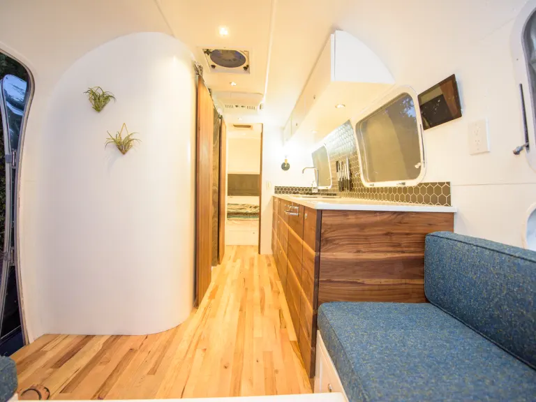 Beautifully remodeled 1973 Airstream Trade Wind travel trailer with high-end, mid-century modern finishes (walnut & hickory wood, ceramic tile, premium fabric and foam).Available for camping trips, weddings, photo shoots, and more! NOT Available FOR Burning MAN. Delivery available!***Don't have a tow vehicle? Not a problem - you can rent our luxury SUV as well.- Sleeps 4 adults comfortably. Bedroom has 1 queen size bed with underbed storage and a small pull out bed for a small child. Dinette converts to oversized queen bed.