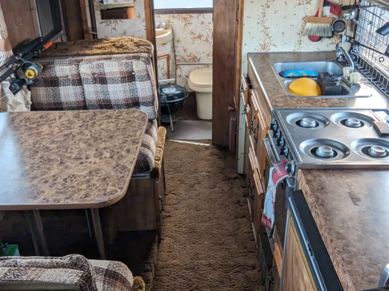 A comfortable twin-sized bed sleeps two tall people very comfortably, plus a bench bed sleeps an additional 1-2 peopleSimilar to Winnebago, chinook, Tioga, ItascaWhat's includedRare rear door Toyota Dolphin original classic RV with 4-speed manual transmission and 22r engine that purrs like a kitten. Fully contained and no leaks above or below.