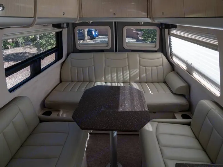 2013 Airstream Interstate 3500 Mercedes-Benz Sprinter van. Featuring an airstream, professional conversion fully equipped with a queen-sized bed, sink, propane stove, microwave, ventilation, A/C and heater. Overhead storage space for all of your gear.Seating for 9 and sleeping accommodations for 2. 4 plush captains chairs make for a very comfortable ride. TV is available with dvd.Turbo 3.0 liter diesel provides excellent power with reasonable fuel economy.Onboard propane generator and solar.Other things to notePets welcome with deposit!No smokingPlease make note of mileage charges that may apply to longer trips.