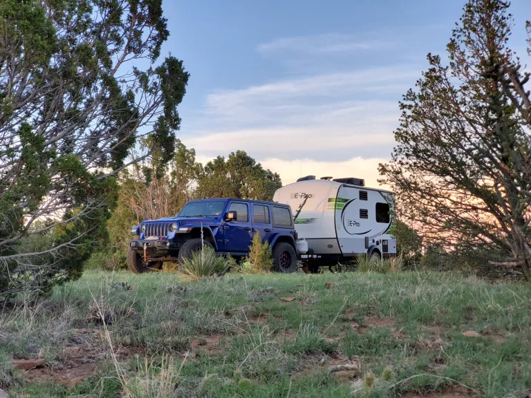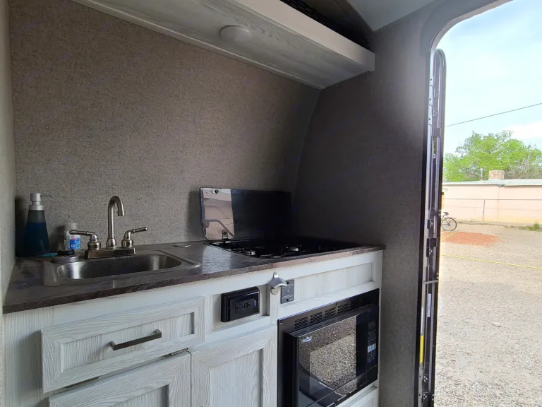 Just a short jaunt from Santa Fe, the San Juans, and the Jemez, this trailer will get you out into nature in comfort and style. Equipped with offroading tires and a lift kit, it will go anywhere you decide to take it. Unlike most trailers, this one is very capable yet requires no setup time; just park your vehicle then kick back and relax. At just 2600 lbs, it's light enough to be easily pulled along by most SUVs, including Jeeps. The E-pro has plenty of storage, including a passthrough underneath for larger gear like snowboards. Also standard is the integrated outdoor kitchen where you can cook outside while enjoying the warm, New Mexico summer!Pet friendly! Heck, take my dog while you're at it! (Must be cleaned and returned)Don't want to clean? No problem! $100
