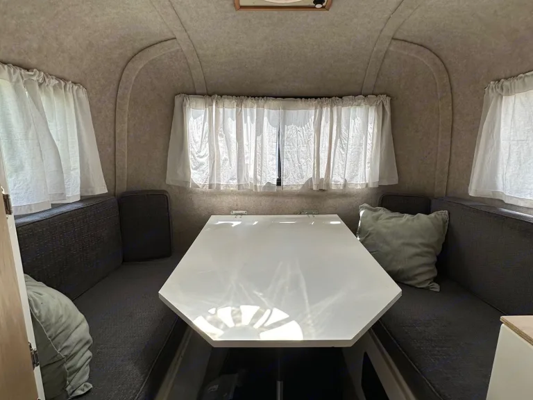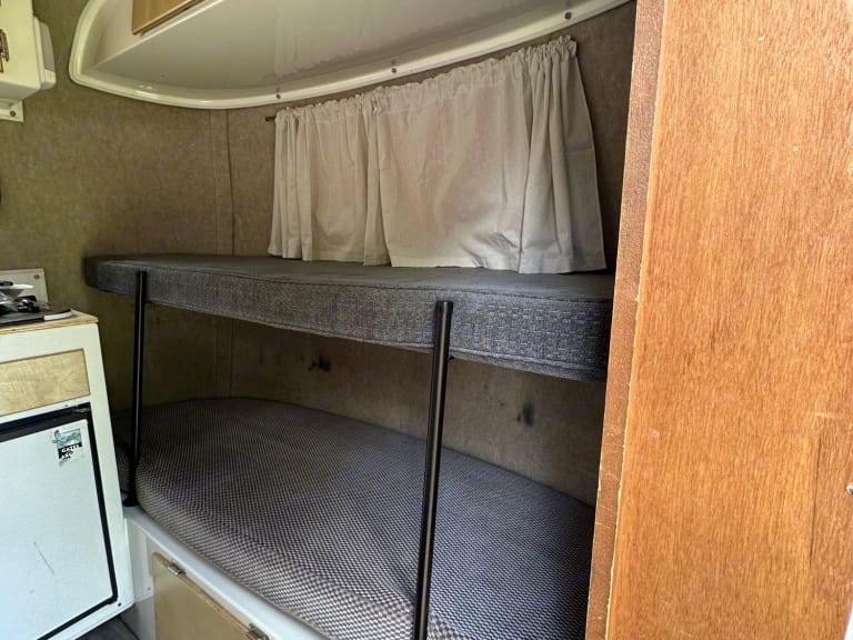 Just renovated scamp ready to help with your next camping trip! At weighing around1500lbs, this trailer can be easily towed to most campsites! This trailer has hit multiple national parks up and down the mountain and you can do it too!Though the scamp can turn into a bunk bed, we prefer it not he used as it is rated to only 100lbs per scamps user guide. The back dining table can be turned into a full size bed!The water can be pumped to wash dishes or can be connected to an external water source for sink.Comes with 4 set of dishes, bowls, cups, utensils.Will also provide a bundle of firewood to help you start your adventure!If there are any questions, please feel to reach out! What's includedFresh linens