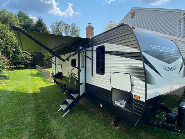 New travel trailer to live comfortably while you camp!What's included2x camp chairs, camping table, linens, cookware, utensils.Can try to accommodate other things upon request.Delivery and pickup within 100mi radius available upon request.RecommendationsNatural Bridge, VA