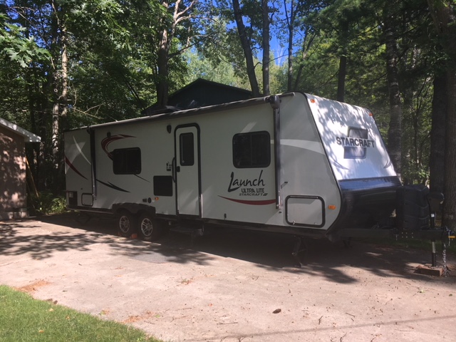 This Launch Ultra Lite 26BHS by Starcraft makes camping easy for a larger family, or one that likes to travel with a few extra guests. The double bed bunks make it simple to take along a friend or two for the kids!As you step inside you will find a refrigerator to your left through the door, and the kitchen amenities straight ahead. There is ample space to prepare and cook food, and you will find everything you need to create meals and snacks on the go. There is a three burner range with microwave oven, counter space, a double kitchen sink, and overhead storage for dishes and things.The master bedroom is to the right of the entry door and features a queen size bed with storage shelf above, and a wardrobe on either side of the bed for clothing.In the center of the living space, there is a slide out sofa which is across from a booth dinette. The perfect conversation area and plenty of space to enjoy meals, snacks, or a board game or two. Both can be made into extra sleeping accommodations at night if needed.Located in the rear of this Launch Ultra Lite travel trailer is a double bed set of bunks. Plenty of sleeping room for four, and the bathroom is conveniently located next door. The bath features a tub/shower, toilet and sink with medicine cabinet.