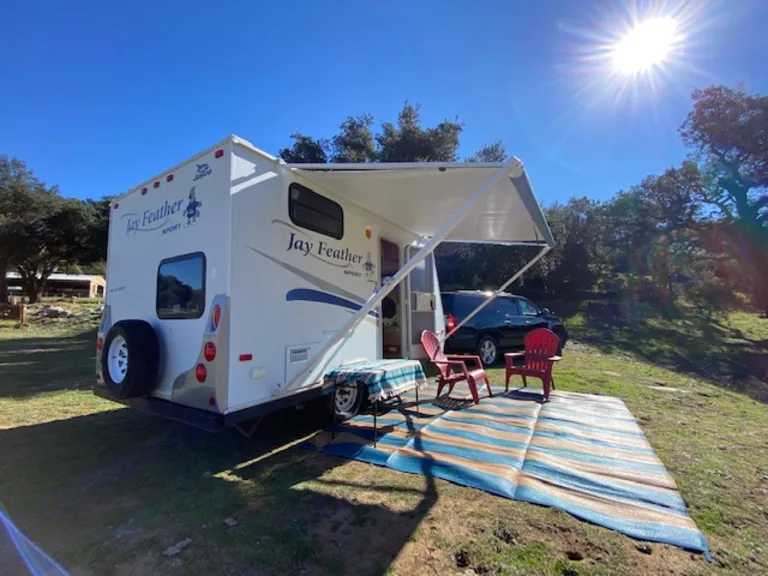 2007 18ft Launch with bunks. Ready for family fun, the Jayfeather has all up to date amenities and features. You will be comfortable with warm weather, as the roof AC keeps the camper chilled. You won't miss a single comfort of home, with a roomy rear bath complete with a tub/shower combination as well as a flush toilet. The front of the camper features a comfy dinette, while the rear has spacious bunks. The dinette folds open to a bed that will also fit a couple more kids, so pile the entire family in for a memorable camping trip.Our JayFeather is easy to tow, maneuver and set up, so it is great for families that are new to towable campers.The refundable security deposit for a self towing rental is $1000. For delivery, it is $500What's includedKitchen includes cook top, microwave and fridge with small freezer. The camper is well-stocked with all the necessities, which include full cookware, dishes, glasses and cups, utensils and kitchen accessories, camping basics and a coffee maker. Camping items include 2 camping chairs and a beach umbrella. At this time, linens and pillows are *not* included automatically, but may be added for a nominal fee upon request. Please inquire if linens and pillows are needed for your trip. A full list of included items is available upon request.