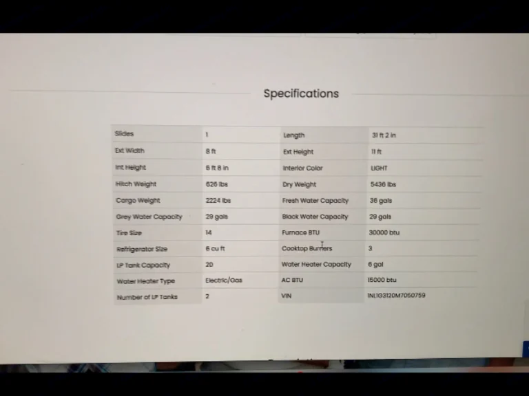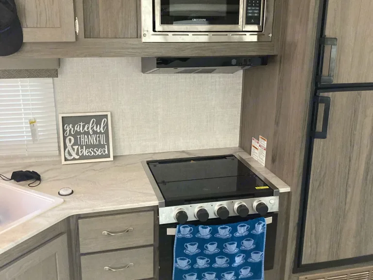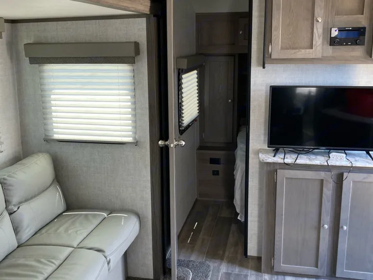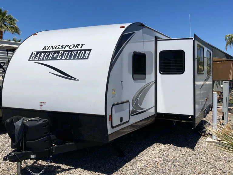 Less than one year old, family owned and ready for your family to make memories. From relaxing under the electric powered led illuminated awning to the open floor plan with 32” tv, you can sit back and enjoy with all in one dvd/media player with both inside and outside speakers. Tv can be mounted to outside mount. Front bedroom with an rv queen plus a “ My Pillow 3” Matress topper” with front enclosed bedroom. The two full size bunk beds in the back with a fun kid friendly layout, they might fight over the built in ladder for the top bunk privileges. Unit has an upgraded 15000 btu A/C ducted with further upgraded RVAirflow system to increase airflow to the ducts. Jackknife couch/bed and dinette into bed. Rear full bathroom has its own door entry from outside. 31’ nose to tail. LED lighting throughout. (Could sleep 8-10 if kids on couch bed and dinette). No onboard generator. Generator available. Glamis, Ocotillo Wells, Ocotillo, Agua Caliente County Park and Superstition May or may not need a generator depending on weather.What's included-Pots/pans