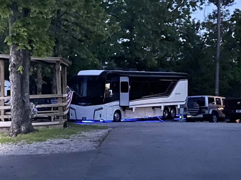 Indulge in glamping's finest with this 43ft luxury Class A, featuring Italian-styled interiors.