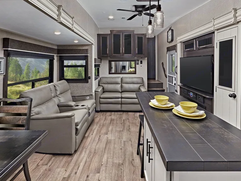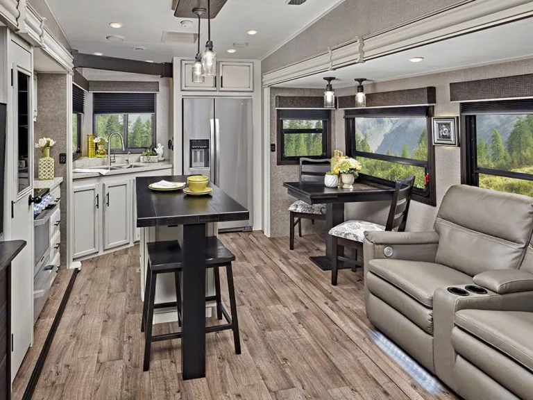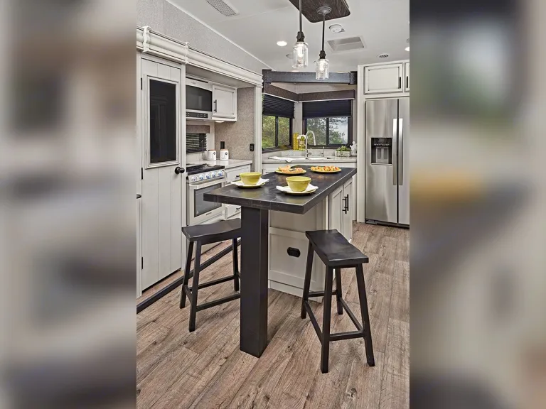 We bought this RV to travel and now we want to share the experience with others. You will enjoy the modern farmhouse design inside complete with a fireplace on chilly nights. Enjoy the king size bed in the bedroom and the pull out sofa in the living room for extra guests. The dining table extends to seat four and comes with extra chairs. Enjoy the sound system indoors and out while you enjoy your cold drinks from the outdoor kitchen.What's includedFresh linens, dishes, pans, two camping chairs, basic essential you need for a weekend booking.RecommendationsBook a stay at an RV park or campground on an area lake. If you're looking for a fun weekend away to explore the outdoors and have a cozy place to come home to in the evening for dinner then this could be a great option!Other things to noteNo pets. No smoking in the RV. No generator included so you will need your own generator or be in a place with electric and water hookups.