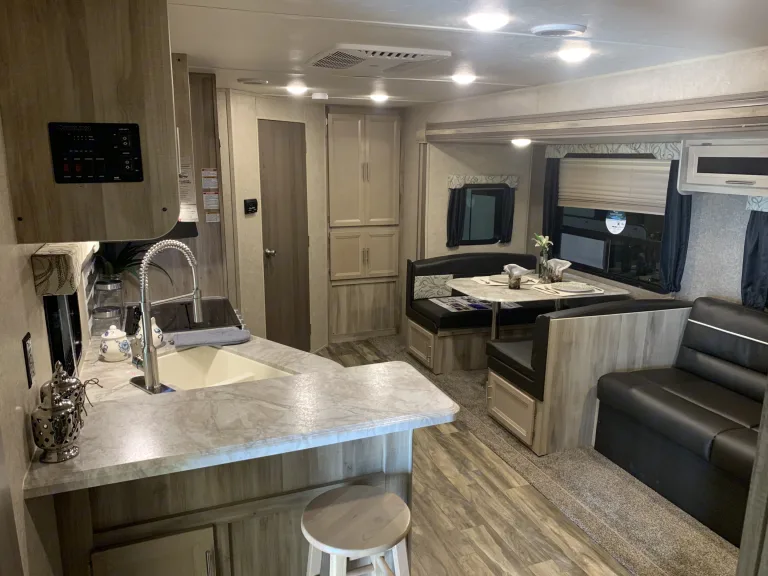 Start your camping legacy today with our camper. Our camper has all the features and amenities of home to take with you on your adventures! Our camper comes with more standard features than any comparable model! The smallest unit on the market with a full 12.4 foot long super slide room that really makes our camper something special! Wake up and grab a bite at the breakfast bar before heading out, then, when you’re ready to come in for the day, our camper provides plenty of space to lounge around. All of this, while still weighing less than 5,800 pounds! It's light enough to be towed by a Dodge Ram 1500 or Ford F-150 with no problem.Camper comes equipped with pots, pans, paper plates, silverware, serving utensils and cleaning supplies.Camper should be cleaned prior to dropping back off with owner; if camper is not cleaned prior to returning, a $100 cleaning fee will be applied (deducted from deposit).Excessive dirt, sand or mud left inside or outside of the camper (including storage areas) will result in a $100 cleaning fee being assessed (deducted from deposit)