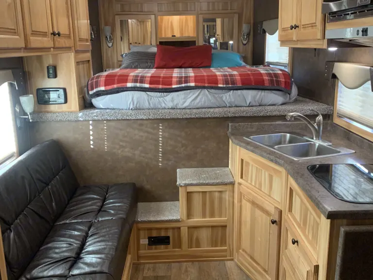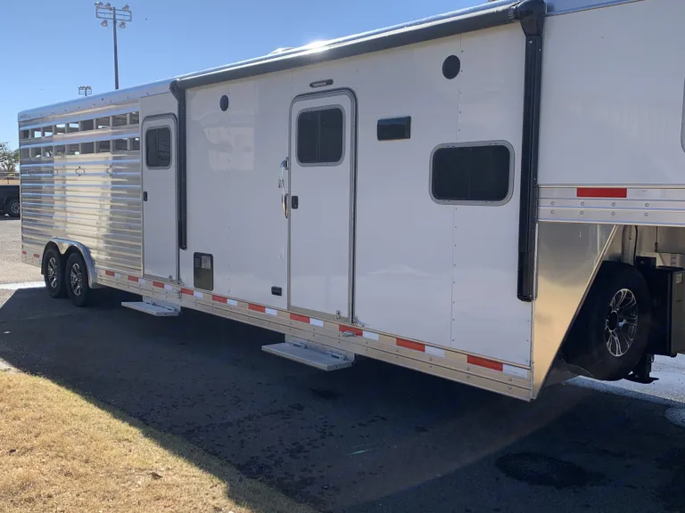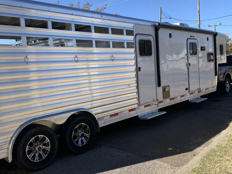 This is a stock combo trailer with living quarters. The stock area is 16ft. It will fit a 4 seater side x side. 40 ft long. Pulls great and ready to haul your toys or horses.