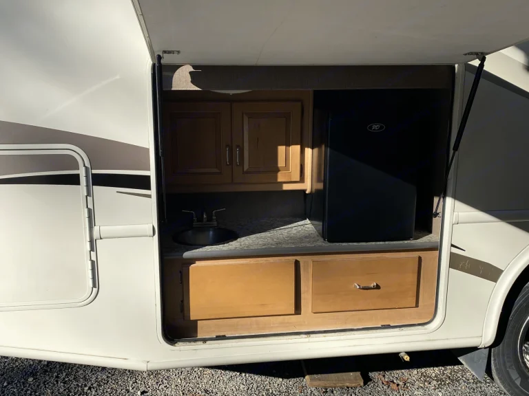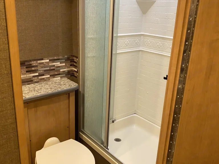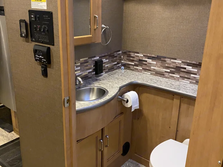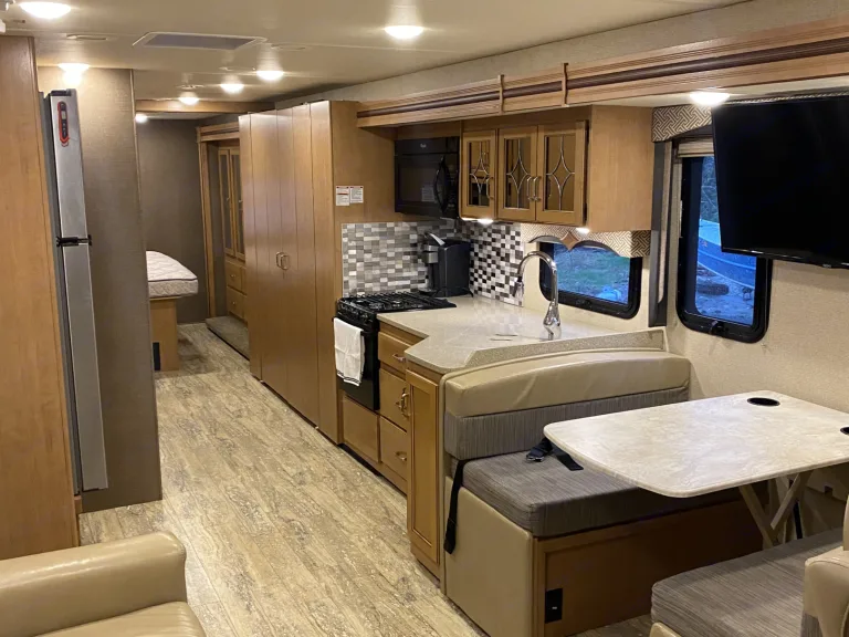 Large windows let everyone enjoy the scenery along the way. Once you arrive, set up camp, extend the awning, and relax outside while the kids play. This motorhome is built for smooth travel and easy setup, making it a great choice for both experienced RVers and first-time families.