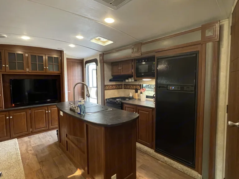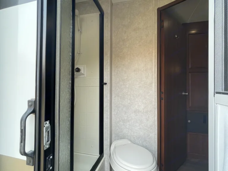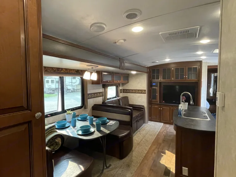 Take your family or friends out to the great outdoors in the comfort of our RV. The trailer fits a large family, featuring 2 large slide outs, 2 full-sized* bunk beds for the kids, a queen bedroom, plus a rear bathroom. *(32”x74”)