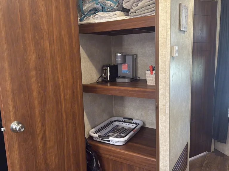For your most carefree camping experience, we include a dining set for 8, cookware and cooking utensils, toaster, and a Keurig coffee maker. Prepare your meals on the island and enjoy your meals at the dinette when you’re ready to come inside to relax. It also features a tri-fold sleeper sofa and large smart TV. This model also features two entry doors with the rear door leading conveniently into the bathroom. There is also a pull-out grill and grilling tools for your outdoor BBQ.With the most luxury features of any other ultra-lite trailer, like the exterior speakers, laundry chute, and LED lighting, the Bullet continues to rank one of the best ultra-lite travel trailers in America. Because of the contoured shape of the radius front profile on the Bullet, it offers less wind resistance as you tow it along the highway, and when you combine that with the extremely lightweight floor plan design, you get one unit that will help you cut costs when spending money on fuel.What's includedIncludes cookware, dining-ware, Keurig coffee maker, toaster, bbq grill, and grilling utensils. Delivery & pickup available upon request, charges apply.RecommendationsGenerator Rental Available, charges apply - We recommend a 3000W minimum to run and power the Rv at its optimum.Other things to noteNO SMOKING - This is a non-smoking Rv. Smoking of any kind is strictly prohibited inside the Rv. A cleaning fee of $250.00 will be charged to the guest's deposit if a violation occurs.Pets welcome, please add to rental agreement. A cleaning fee of $250.00 will be charged to the guest's deposit if a violation occurs.Empty gray & black tanks prior to return, unless included in agreement. $175 charge will be assessed to deposit.Minimum renter age of 25, No Festivals (Burning Man etc.)