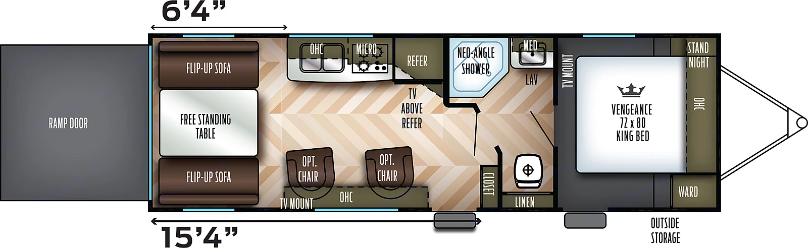 Brand new toy hauler in perfect condition. Go anywhere in complete comfort with everything you could ever need or want. This Toy Hauler comfortably sleeps six, with a "RV King" bedroom, a queen bed that lowers from the ceiling, and a convertible queen sofa bed. It has a beautiful living space with a modern living room/kitchen and a separate bedroom. It has a 21 ft power retractable awning and a rear patio/deck. All linens are included: six bath towels, hand towels, wash cloths, kitchen towel, two spare blankets and sheets/comforters for both queen sized beds. Linens for convertible queen sofa bed will not be provided, two sleeping bags are recommended. All kitchen utensils, dishes, crockpot, and cast iron skillet are included in rental.