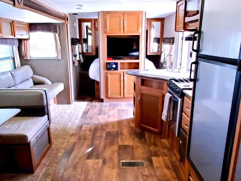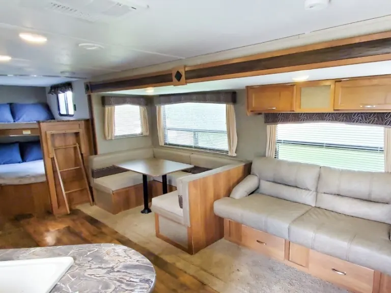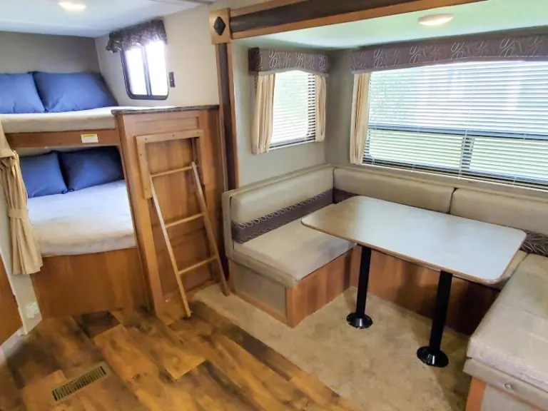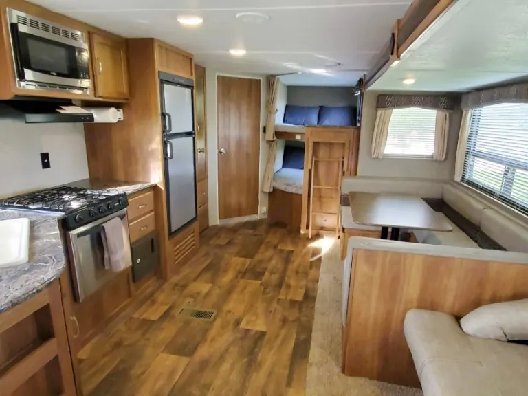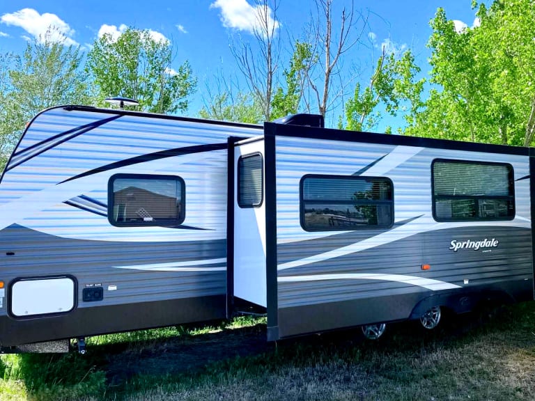Come and enjoy a comfortable getaway in our 2017 Keystone Springdale 282BH! This travel trailer has been lightly used and is in immaculate condition.The camper comes supplied with new bedding, blankets, pillows, towels, kitchen utensils (plates, bowls, cups, silverware), basic cooking utensils, hand soap, toilet paper, and camping chairs.This camper has a queen bed, double bunk beds, U-shaped dinette that converts to a bed, and a sofa that converts to a double bed. The original queen mattress has been upgraded to a full-sized pillow-top queen mattress for extra comfort. The camper has a TV/DVD player, radio, Bluetooth, and indoor/outdoor speakers. We request that the outside camper awning not be used during rental (due to expensive damage that can easily occur with wind). A 10 x 10 pop-up canopy will be provided for your use.We love your furry co-pilot. Please advise us as to the size, breed, and age of your buddy so we can make accommodations.Want to pull the camper yourself? A 6-wire round plug, 2-inch (or bigger) hitch receiver, and brake assist are required to tow the RV. An equalizer hitch will come with the camper.Need the camper delivered? Delivery & Pick-up is available for $4/mile.