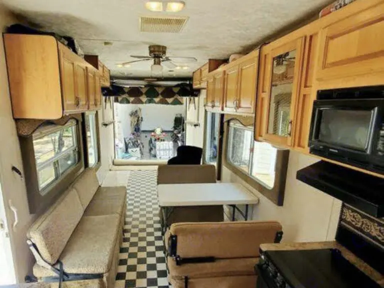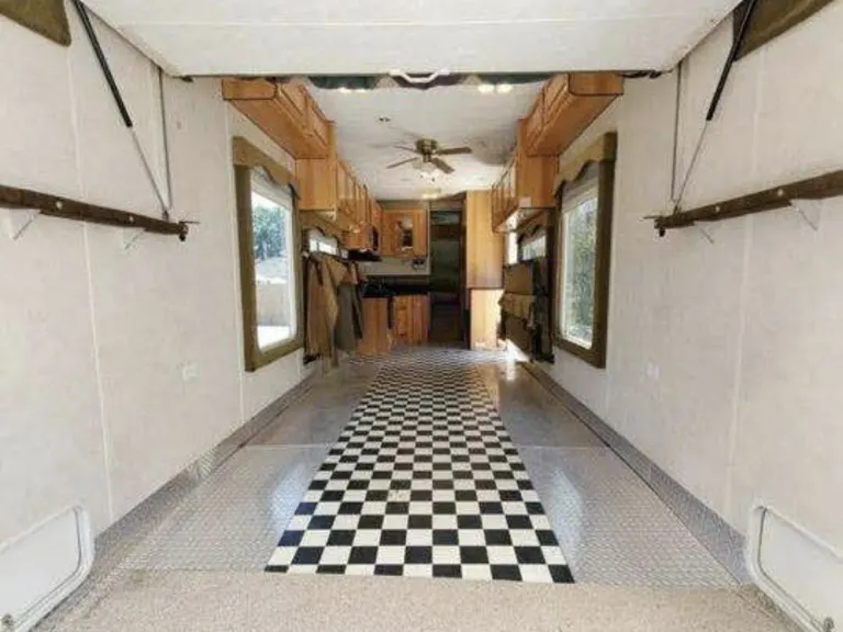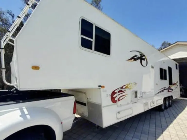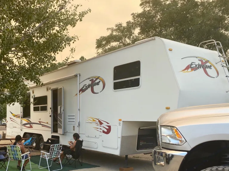 38 ft 5th wheel toy hauler with 20 ft of cargo space.Toilet, shower, sink, stove, outdoor BBQ, two propane tanks, onboard generator, ice maker, refrigerator and freezer, ceiling fan.Front room with queen bed, rear queen bunk and two foldable couches that are about the size of a twin bed each. What's includedfresh linens, camping chairs, cleaning supplies, cookware, utensils and hand sanitizers.Must have a vehicle with a fifth wheel hitch to tow or delivery and pickup within 60 miles upon request for additional fee. Other things to notePets welcome, absolutely no smoking.If tanks are full at time of pickup a $100 dollar dump fee will be added.