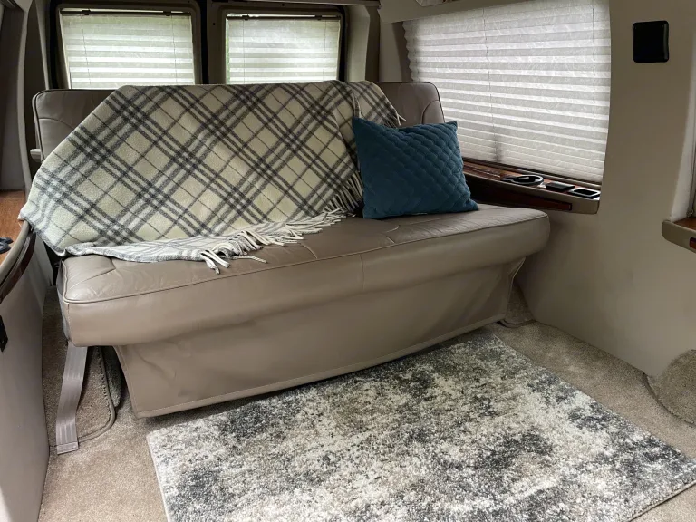 Are you ready to explore Alaska? This plush, cozy van will keep you warm and dry as you experience the best of Alaska. The rear passenger seat converts to a comfy, full sized bed with space to spare. Pull down shades create privacy. In the cab, you'll find oversized leather seats great for long road trips. Easy to drive and maneuver. Alaska roads and campsites can be tough with oversized RVs. This van is perfect for tight spaces and long drives- great on gas mileage too. Join the Vandemic and experience life on the road in beautiful Alaska!What's includedA mattress pad and clean, fitted sheet are provided along with a small cooler, camp stove, and a water jug. Guests need to supply their own bedding/sleeping bags/stove fuel. 2 camp chairs and a small folding table are provided. Day pass for area parks parking also comes with the van. Other things to noteNo smoking