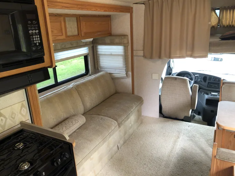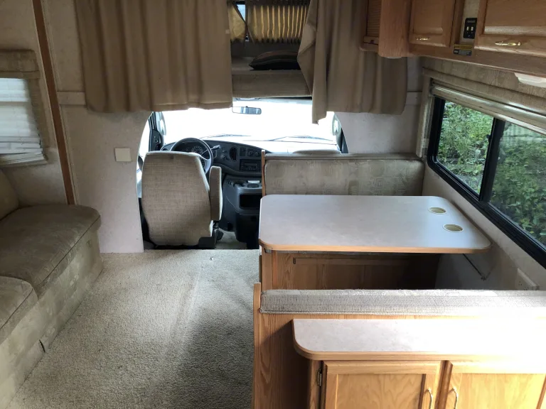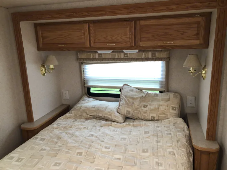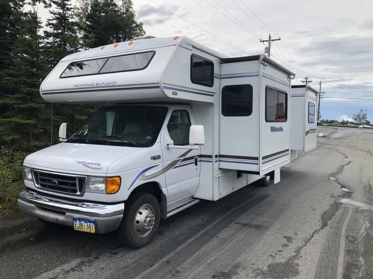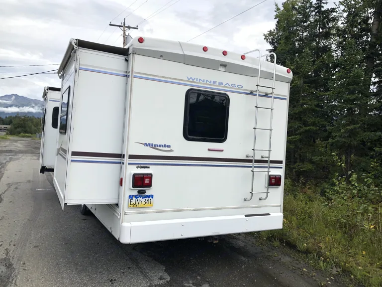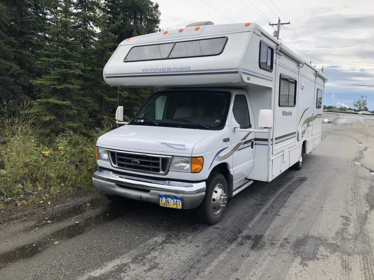 Outside, the RV comes with a 20A/30A electrical shore power adapter, waste water drain hose, freshwater fill hose, and two or more folding chairs.Year: 2004, Engine: 6.8L V10, Transmission is an Automatic, Air conditioner is a 110VAC Roof top unit along with an automotive console. This RV will sleep up to 8 with 2 in the rear queen bedroom slide out, 2 in the convertible dinette, 2 in the overhead overhead queen bunk, 2 in the jack-knife couch.The basic cleaning supplies include a swiffer, basic spray cleaners, first rolls of RV toilet paper, first roll of paper towels.If you select the Optional Bedding package it will include up to 4 sets of sheets, 4 comforters, 8 pillows, 8 towels.In reference to Airport Pickup and drop off, we offer complimentary Anchorage airport or hotel pick up and drop off from 9AM to 5 PM. We expect you to arrange this weeks in advance so we can staff your return properly. There is a fee if you need a drop or pickup the RV between 6PM to 8AM. There are also options to arrange to park it at our storage lot. And then we have a secure key-box for your late arrival access. Please contact us well ahead of time for details.Please return the RV as you found it, nice and clean and dumped and ready for the next customer. We do offer an optional clean and dump fee at the end of your trip. For a fee and with advance notice, we will clean the inside, wash the outside, top off the fresh water and empty the black and gray tanks.We always offer RV rental insurance to qualified individuals on all our units. Our Wheelbase/Outdoorsy vehicle insurance includes collision, comprehensive, and liability with a $1000-2500 deductible, depending upon which insurance is selected. Selected insurance has up to a million dollar liability coverage.All of our rental units must be returned with full gasoline and full propane.