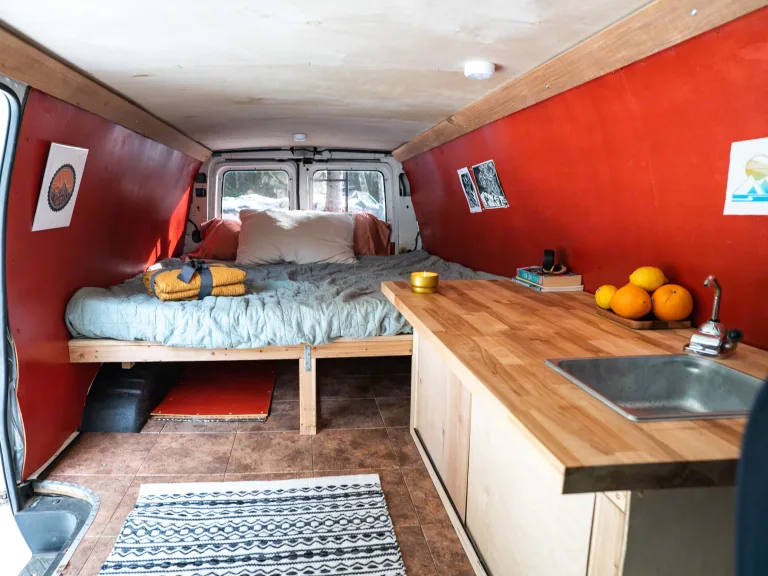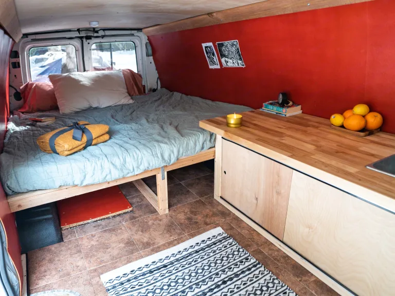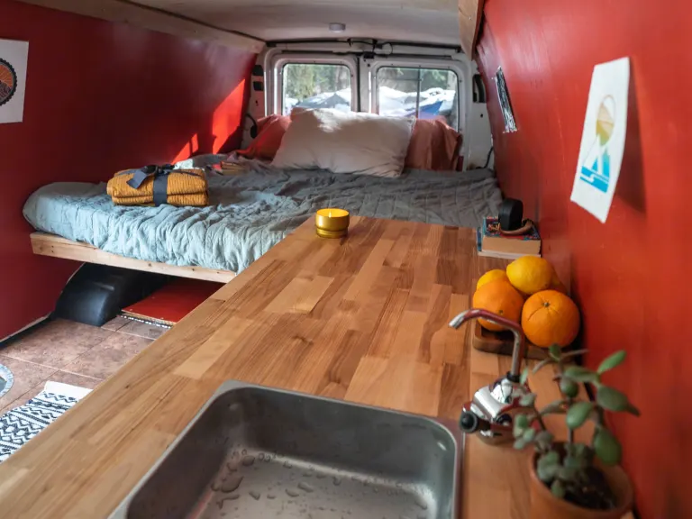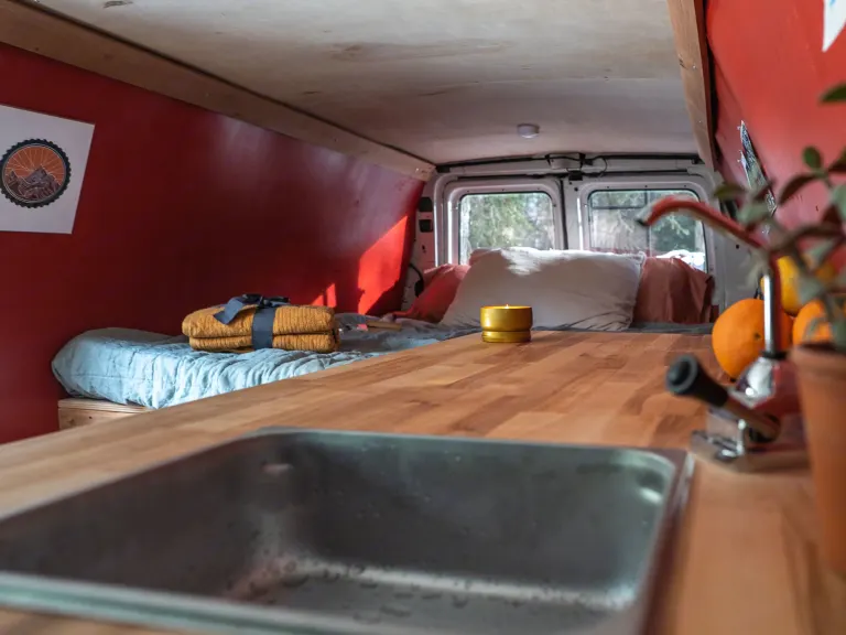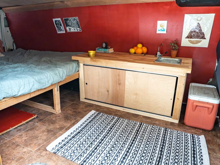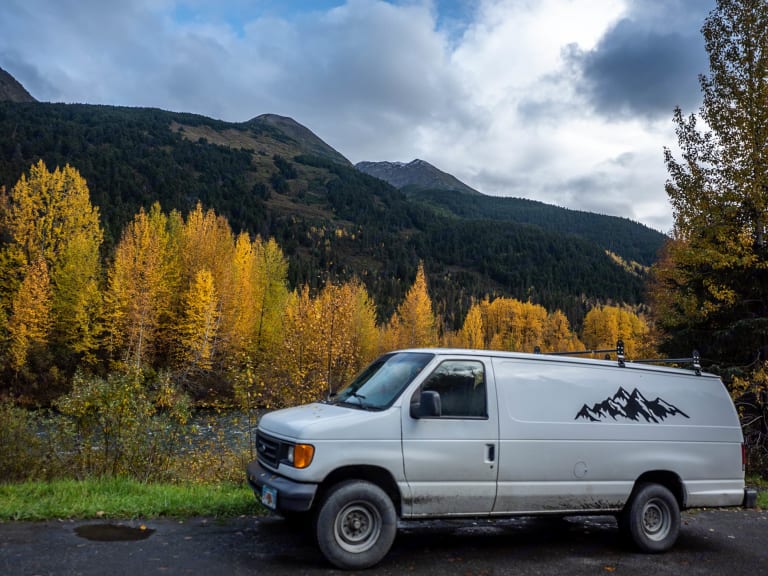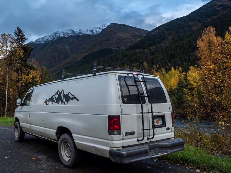 The Cozy Camper Van is a 2006 Ford E-350 Extended van. It has a large memory foam mattress bed, butcher block counter with built in sink, and the essentials for a classic Alaskan road trip.This is a perfect functional rig to get on the road for your adventure, and not too big to be able to stop and park in any town along the way.