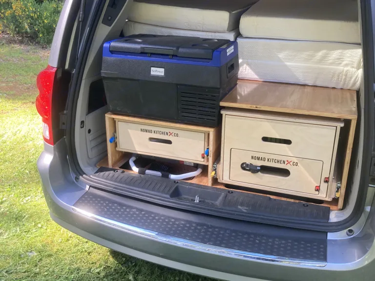 The 2014 Chrysler Town & Country 4 door wagon van is a perfect choice for your Alaskan adventure. It has inside storage space underneath the bed, below the rear kitchen and other areas inside the van. Additional storage for linens pillows, comforters, etc. Depending upon model, may iclude a pop up roof tent with accessible ladder.This unit is a passenger van with two seats up front and two seats that fold into the floor for storage. The maximum seating is for four people and the sleeping capacity is either 2 or 4. The rear cabin has a folding conversion bed rated for two adults. The optional upper tent sleeper opens up to allow sleeping for two adults using an accessible ladder for getting up and down. Depending upon model rented. Ask About this option.The windows have curtains around the bed/sleeping area to provide privacy. For ventilation the rear side windows slide down and magnetic mosquito netting is included for ventilation without the bugs.Van comes equipped with a built in refrigerator operated from the ecosystem battery/AC inverter system. The auxiliary battery bank needs to be recharged daily by idling, driving, or plugging into campsite power, we provide an extension cord for hooking up. This van also contains a cooking stove, sink, fresh water tank, pot and pan, flatware, and bowls/pates/mugs, etc. Additionally included are folding chairs and a table.Year: 2014, Engine: 3.6LV6, Transmission: 6 speed Automatic, air conditioner: console, sleeps 4 total: Rear bed sleeps 2, If equipped, roof tent sleeps 2.Optional Bedding package: for a fee we can provide bedding for up to 4 people.Pickup/drop off: We offer complimentary Anchorage airport or hotel pick up and drop off during business hours of 8AM to 6PM. There is a fee if you need us after hours for a delivery/drop off and this service is required to be scheduled in advance and is on a case by case basis.Optional clean and wash fee: Please return vehicle clean or optionally with advance notice and a fee, we will clean the inside and wash the outside.Insurance: Your automotive insurance on our camper van may work with this rental. However, we will need a written binder from your insurance company in advance. Alternately, we can provide insurance for a fee. Our vehicle insurance includes collision, comprehensive, and up to a 1 million liability. Deductibels range from $1000-$2500 depending upon insurance chosen.This vehicle will be delivered to you with a full tank of gas and we ask that it is returned with a full tank.