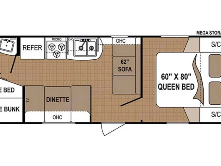 What's includedThis RV comes with everything you'll need to an over night stay to a multi week adventure.Just bring your clothes and food, then hook up and go with this turn-key camping setup: