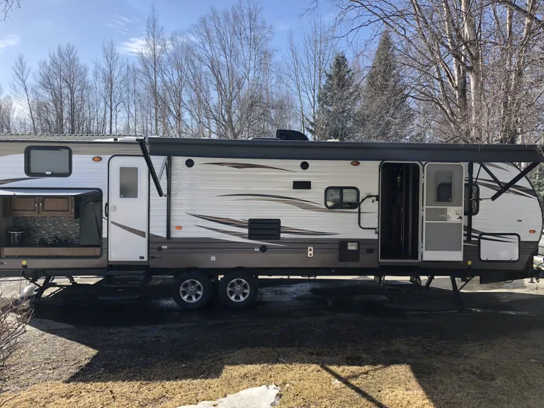 Traveling to the Great Alaska? Wake up to the glassy blue green waters in Seward, or the peaceful greenery of Portage Valley. Enjoying your fresh, hot, cup of coffee while you kick your feet up in the warmth of this luxurious camper will never be more fabulous.Planning a girls getaway? Drink champagne, listing to music, and soak up the sun while waves come crashing up on the beach in Homer.Boys trip? Play a game of cards with your pals while you relax after a full day of fishing on the Russian River.Rain or shine, this camper is a home away from home and an experience you will not forget. Wherever you are parked, take advantage of all the fabulous amenities you can imagine. Enjoy the wilderness in the comforts of home. In our 32’ travel trailer you can rest assure the only thing you will need to think about is - what kind of adventures shall we do today!!We bought this beauty in Feb of 2017. We got to enjoy a full summer of camping last year and loved it! It’s comfortable even on rainy days. Alaska weather is so unpredictable and this was a nice way to enjoy a home away from home. It’s great for a family with kids, or an adults only kind of trip! There is a tv in the main living area that hooks to the surround sound and a DVD/ CD player that can connect to outside speakers too! Lots of things to do inside and out.Sleeping