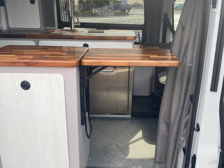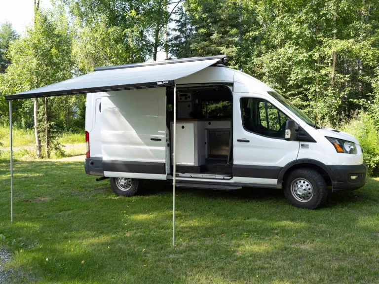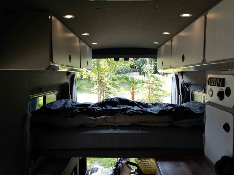 This Custom Adventure Van is a new reliable 2020 Ford Transit 250 AWD with the Ecoboost engine. The van was converted by the best in the industry, in Alaska. Charlie and his crew have been building commercial fishing boats for over 30 years. Built to explore our planet year-round in comfort. The workmanship and quality are nothing but exceptional. This two-person van is built for adventure and comfort in mind. The components are top quality and no expense was spared. Anyone who sees the van knows immediately that this is a special van.With a custom suspension and new all-terrain tires, this van is a joy to drive. It is also easy to park and can go most places a full-size truck can fit. Smooth on the freeway and steady on the county roads you get maximum flexibility for camping and exploring.The two captain chairs rotate to face the living space and have their own tables for use as a desk or a dining table. With multiple outlets and USB ports, you can both work and play in a dedicated comfortable space while keeping all your electronics charged.Under the bed is a spacious "garage" where toys and gear can be stored and separated from the living area and secured inside- bikes, skis, parachutes, Fido, it will all fit and leave you with room to relax.Please do not take this van off-roading at any point in your travels. I know it is an AWD but that does not make it off-road capable. There are many roads that are improved to access the beauty and treasures of the great State of Alaska. I am happy to help you map out "off the beaten path" routes with dispersed camping options along the way.What's includedQueen size bed, Sink with running water and 2 - 5 gallon tanks. Dometic Refrigerator /Freezer 2 camping chairs, coffee maker, electric water heater, linens, cookware, camp stove, propane tank, fridge, full set of utensils (including knives, bottle opener etc), tire compressor, and wheel repair kit, a high lift for easy tire change, cooktop, cutting board, two pillows, sheets, blanket, towels, plates, bowls, cloth baskets to hold food, toiletries and creature comforts. We provide basic spices and a few pantry extras to help with your main dishes. A full compliment of solar panels and battery bank ensure that your electrical needs are met, you have hot water/shower, heat, and charging for all the devices.RecommendationsI have an extensive list of options and routes which I look forward to helping you with.Basing out of Anchorage, only minutes away from Anchorage International Airport, gives you many options to explore the State of Alaska. May it be hiking the Chugach Mountains, or exploring the Kenai Peninsular there is so much to do. If you want to experience wild Alaska on your own terms and would love to hike and camp off the beaten path this is the best way to do it!Please let me know if you want recommendations on parks and must-sees in the area!