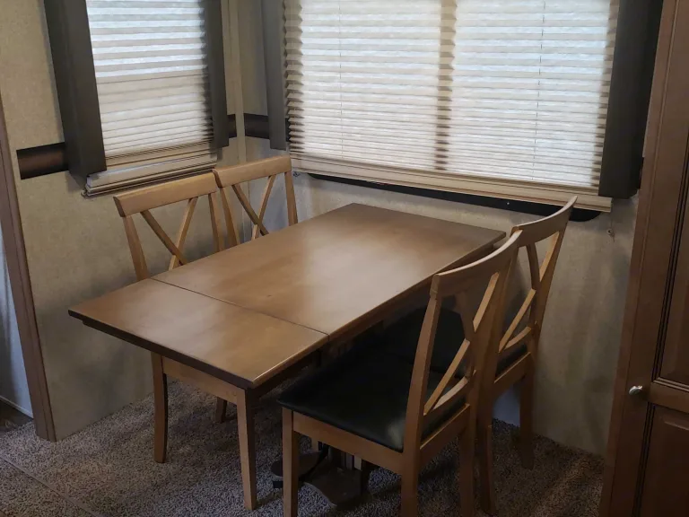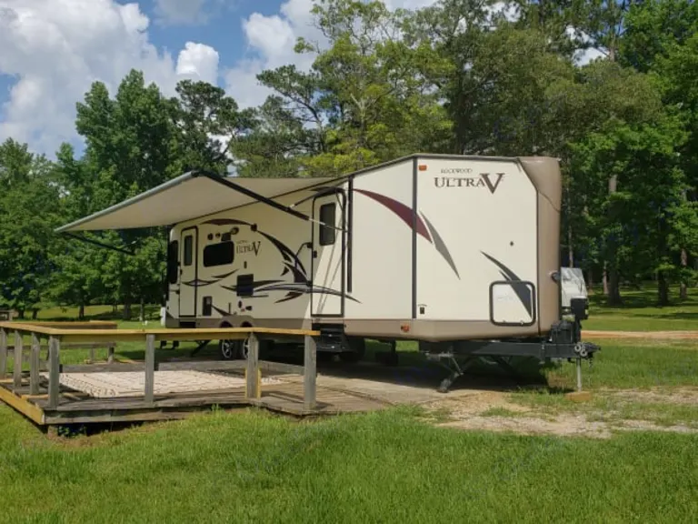 2017Rockwood 2811VS Ultra V comes with 2 slides, a real Queen size bed, 4 chair dinette set, Outdoor speakers, vanity, jack knife sofa for small child, includes pots, pans, 2 skillets, coffee pot, living room tv, bedroom tv. This camper is available for delivery only.What's includedThis camper comes with 2 propane tanks and no charge for use of first tank, sheets and covers are provided upon request. You must bring your own pillows , towels and wash cloths.Other things to noteThis camper is by delivery only