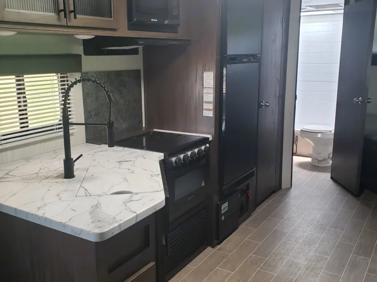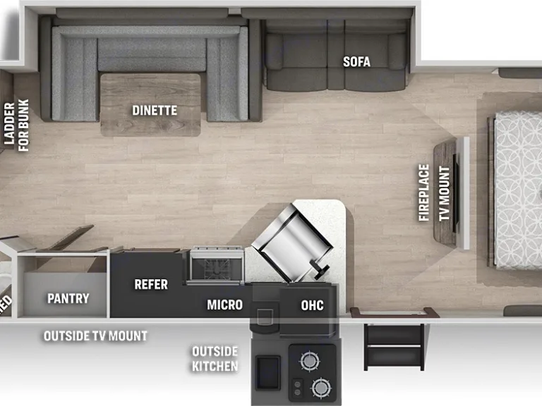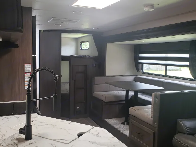 The 26DBH is the ultimate family camper, with a double entry and access to the bath from outside. The double bed bunk, with ladder, provides extra sleeping room for kids and adults. The modern custom kitchen, oversized full pantry and extra-large U-shaped dinette with full length drawers give you more than enough storage for camping gear and supplies. The exterior will provide a great entertaining space with the exclusive Cherokee camp kitchen, exterior speakersWhat's includedThis camper comes with 2 propane tanks and no charge for use of first tank, sheets and covers are provided upon request. You must bring your own pillows , towels and wash cloths.Other things to noteCleaning: If camper is not returned in the same clean condition as it was when received, A minimum charge of $100/hour will be deducted from deposit