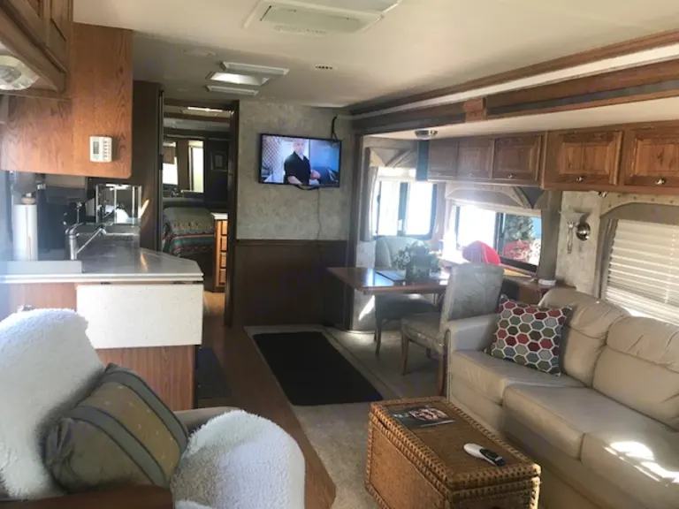 In show room mint condition. Two slide outs ,two tv's with direct TV , lots of storage room . RV is stationed at Roadhaven Resort where you can rent by the month .