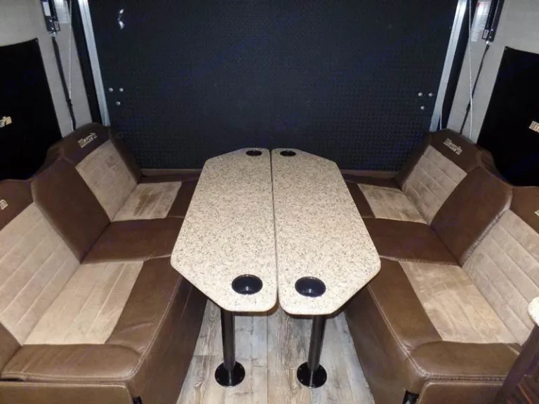 Comfortable to sleep six adults, big bathroom ,outside radio ,fits a 4 seat RZR[140L x 67W( in front rear is much wider behind the cabinets) x 77H] half ton towable, 40 inch flat screen with DVD and HD antenna, Inside/outside Radio, On board 25 gallon fuel station. Dry weight #5700 Gross Weight #9000 lbs, Trailer was purchase new in Dec 2018 and has only been used a handful of times.140L x 67W( in front rear is much wider behind the cabinets) x 77H