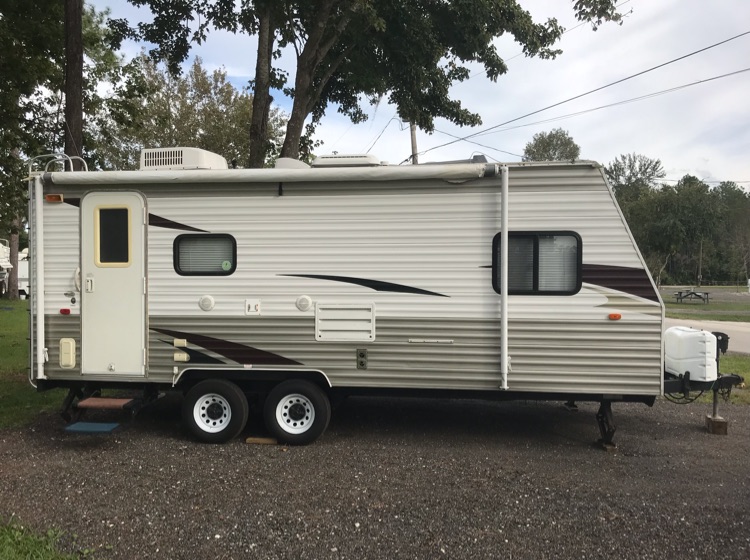 2010 Forest River Cherokee Grey Wolf 19RR Toy Hauler. Good condition, everything works well. A/C is ice cold for those hot days and the heater will keep you warm on a cold night. Water heater provides a nice, hot shower. Front master queen size bed is very comfortable and private. Can be pulled with a 1/2 ton local distances. Can add an inflatable mattress in the back for additional sleepers but is perfect for 2. Will accommodate a motorcycle or non-lifted golf cart.