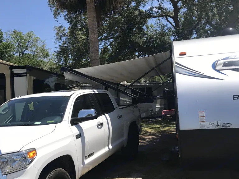This camper is a 36’ cruise lite, weighing in at just over 6,000lbs. Fully self contained unit 50 gallon fresh water and 25/25 grey and black holding tanks. This unit can sleep up to 8. It is equipped with a memory foam queen bed with two spacious closets in the master. The master contains a 32 inch flat screen tv. While the family area contains a 42inch. The camper has indoor and out door led lighting making it very efficient. The kitchen area includes all the pots pans and utensils. Surround sound and out door speaker equipped. This unit has one slide and a nice awning.30amp A/C Cools this bad boy like no business. The fridge is almost full size and is adequate for the use of the camper. The camper features an attached grill with a outdoor kitchen.