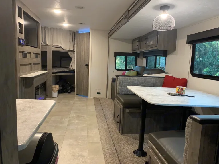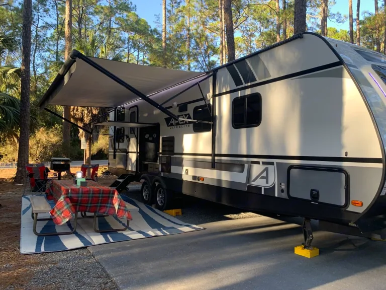 Experience the magic of Walt Disney World in unparalleled comfort and style. Our meticulously maintained 2021 Coachmen Apex Bunkhouse Camper, nestled amidst the natural beauty of Fort Wilderness, offers the perfect blend of adventure and relaxation.Imagine waking up to the sounds of nature, brewing coffee in your fully equipped outdoor kitchen, and enjoying breakfast under the Florida sunshine. After a thrilling day exploring the parks, return to your camper for a refreshing shower under a skylight, followed by an evening filled with laughter and games under the stars.What's includedHere's what awaits you: