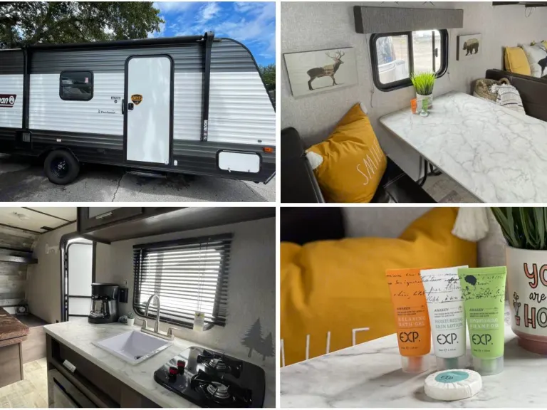 When you’re thinking about travel you want to have comfortable accommodations to feel like home everywhere. We can do that for you! In the trailer there is a long list of amenities allows you to get the most out of your outdoor adventure! The modern Colman features a queen-size bed with a soft mattress, a bunk bed, not only children like to sleep on it, there is also a convertible dinette. The spacious well equipped kitchen with basic staff & a coffeemaker , air conditioning , hot and cold water supply, compact refrigerator, stove, shower, toilet and even a fireplace for a cold weather! Everything you need for life, it’s literally a downsizing version of your home!Linens NOT included!Short term rental less than 3 days -