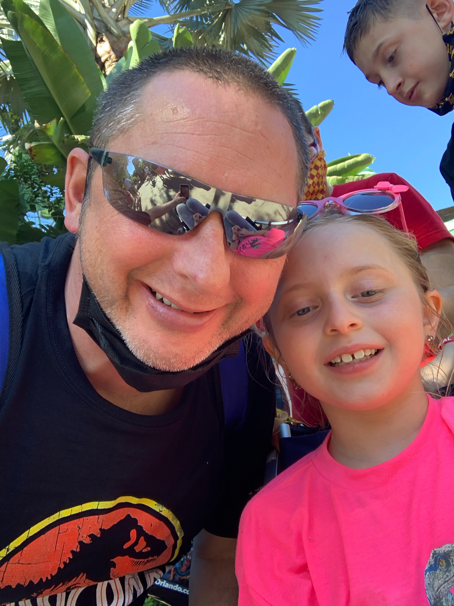 Modern style wood flooring with full size fridge and bathroom roomy camper for family of 5.