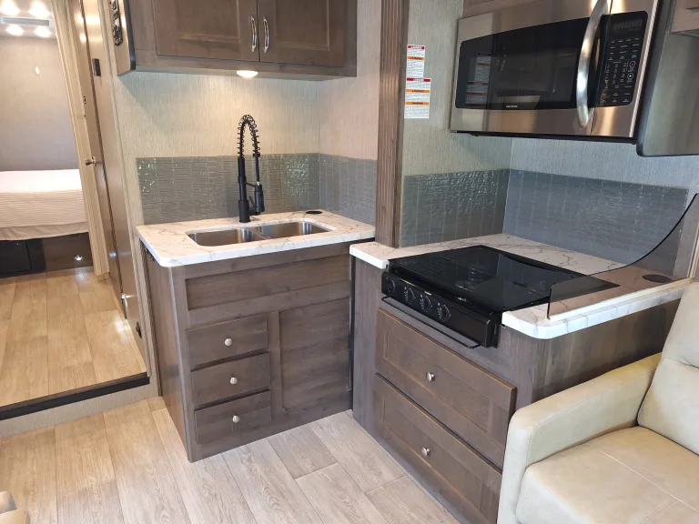 ●Awning with built in lighting>>>Awning Use Policy<<<The awning is for shade and light use only. Please follow these rules to prevent damage:Never leave the awning out in wind, rain, or overnight – sudden weather changes can cause severe damage.Do not hang or attach items (lights, towels, grills, decorations, etc.) to the awning.Always retract the awning before driving.If you are leaving the RV unattended, retract the awning first.Any damage to the awning caused by misuse or neglect will be the renter’s financial responsibility.The awning is expensive to repair, so please use with care.Add-On Items (Available Upon Request):