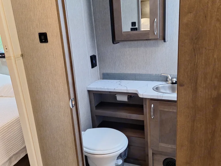 ●Guests to bring additional toiletries>>>Toilet & Flushing Rule<<<Only RV-safe toilet paper provided by us may be flushed. Absolutely no wipes, paper towels, feminine products, diapers, tissues, or any other materials are allowed in the toilet.Flushing anything else will clog the system and may result in costly repairs.If a clog or damage occurs because non-RV items were flushed, the renter will be responsible for all repair and service fees.A small trash can is provided in the bathroom for all non-toilet paper waste. Please use it to help keep the RV running smoothly.Kitchen Gear: