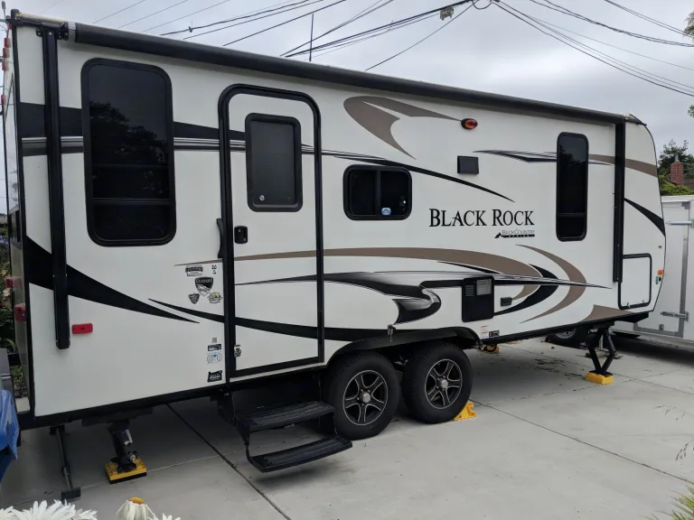 Our trailer features an outdoor shower for washing yourself or your dog off after the beach.