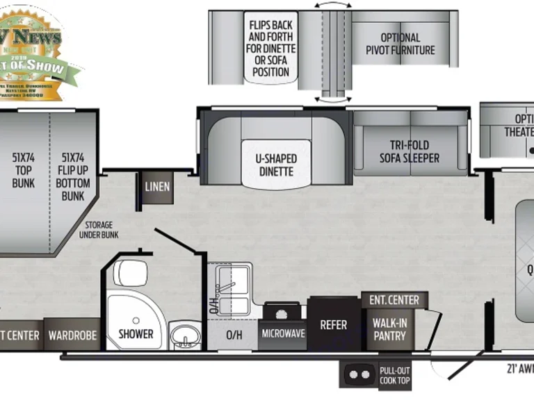Enjoy this brand new 2020 keystone passport 3400QD ( quad bunk )Camping has never been so good with this new travel trailerEnjoy a 21’ awning with white led lights while camping and enjoying the outdoors with friends and family along with a small outdoor kitchen equipment with a mini fridge and 3 burner propane stoveInside you have a full Queen size bed up front with pocket doors