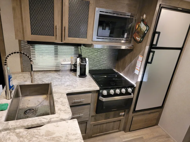 Where to Start! Our Vibe is a well built camping machine. It includes all of the comforts of home with a modern and updated feel. We have used this trailer sparingly even though we love it and it is in amazing condition.It has all of the things that you could hope for in a home away from home. Comfortable sleeping arrangements for parents up in the master bedroom as well as bunk beds in the private room in the back. This gives adults and kids their own separate spaces. It is also great for multiple couples to travel together while still giving two separate private spaces.The outside are is great, we provide an outdoor floor covering to help reduce dust and the mess. The included BBQ which hooks right up the trailer propane system is included as well as the awfully convenient outdoor counter space and sink.What's included-Basic Dishes and utensils