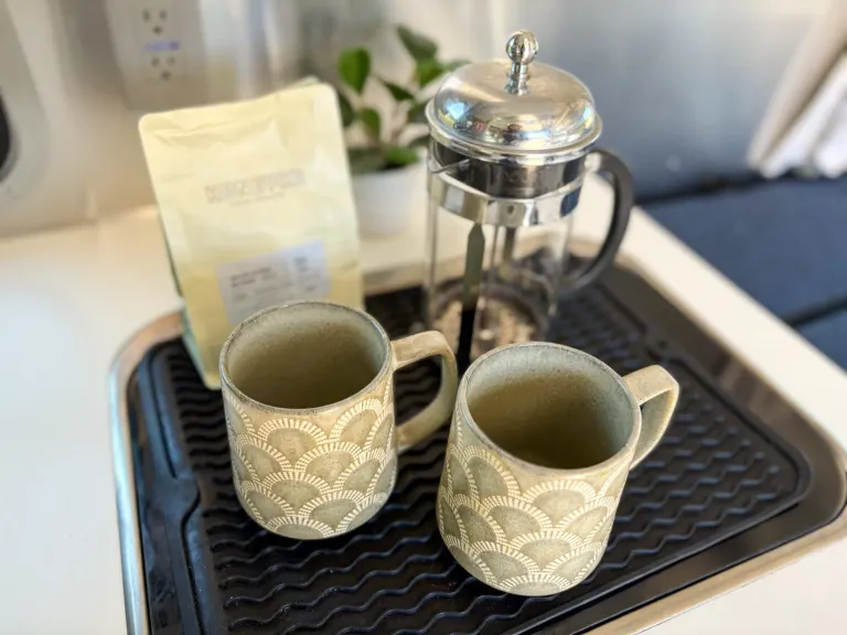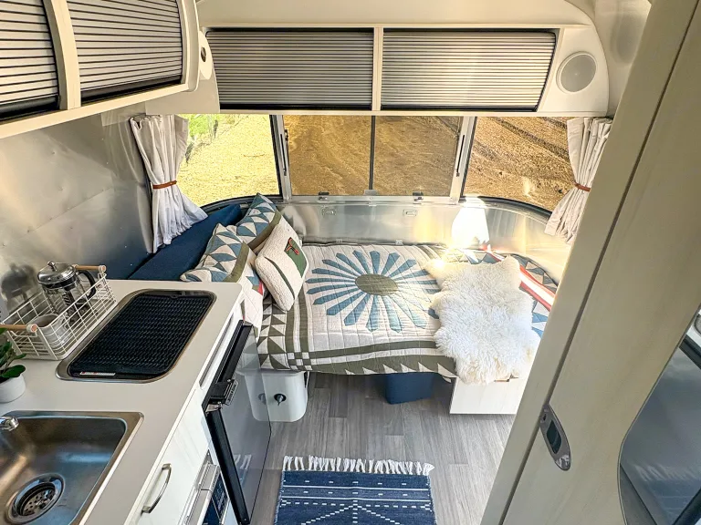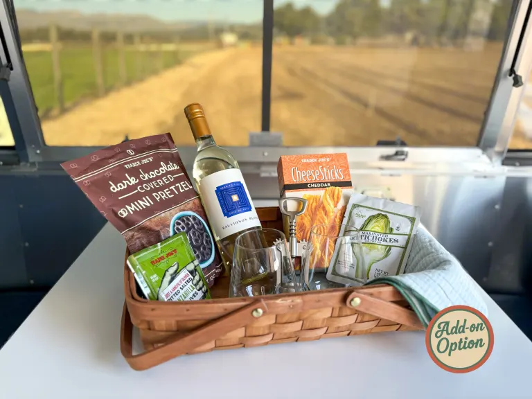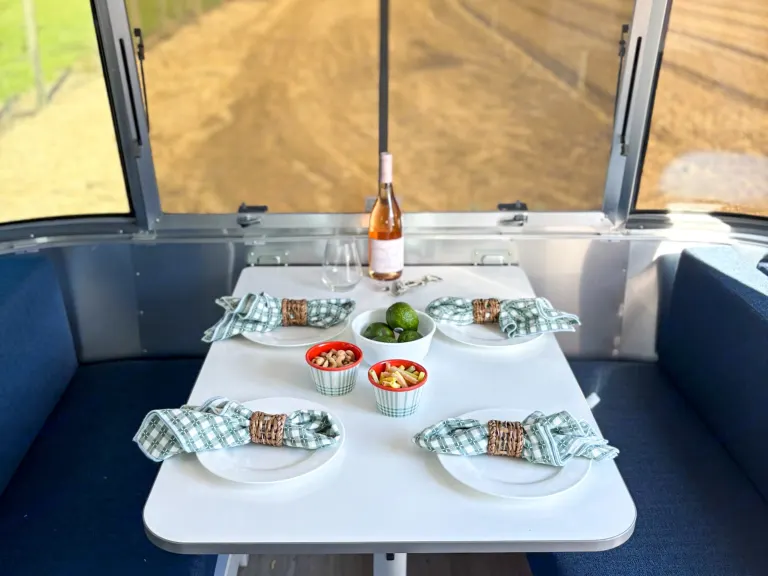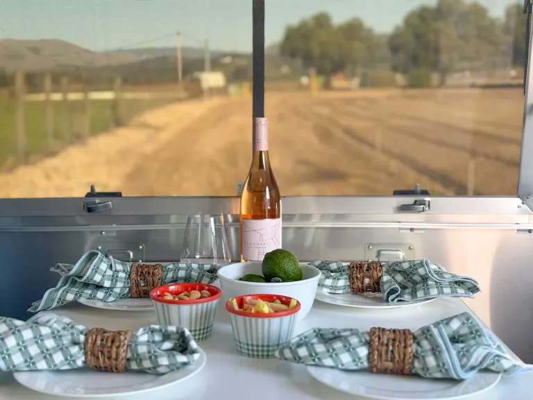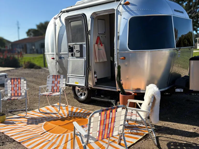 Meet Moonshine, our retro-coastal inspired 16’ Airstream Bambi, designed for easy, cozy camping without the stress of towing. She’s the perfect “little house on the freeway” for couples, small families, or anyone looking for a beautifully curated camping experience.We offer concierge delivery only (no towing required!), which means we bring Moonshine directly to your campsite/hipcamp/home/etc, set everything up for you, and return at checkout to pack it all down. You get all the magic of Airstream life… minus the logistics.Inside you’ll find designer linens, thoughtful details, and a fully stocked kitchen—everything you need to relax, unwind, and settle into the simple joys of camping on the Central Coast.What's includedCamp Kitchen Basics: